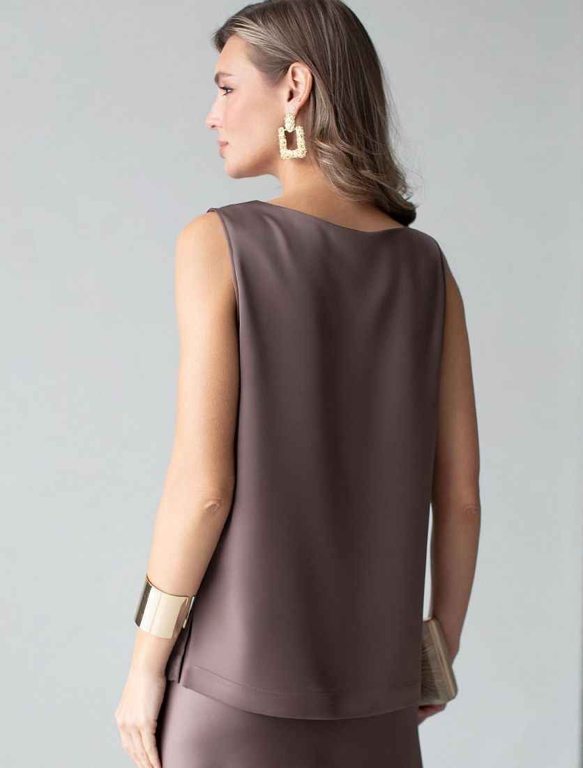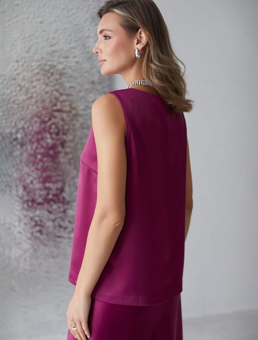 Изящный нарядный топ черного цвета с V вырезом выполнен из нежного премиального сатина с небольшим добавлением эластана. Свободный крой обеспечивает комфорт, легкость и свободу движений, подчеркивая изысканность образа и женственность силуэта. Особое внимание привлекает мягкий приглушенный блеск материала, придающий топу дорогое и утонченное звучание. Материал отличается приятной текстурой и долговечностью, что гарантирует долгий срок службы топа. Благодаря струящейся, но плотной ткани, топ мягко ложится по фигуре, придавая легкость и подчеркивая достоинства любого типа фигуры. Приятная на ощупь текстура и хорошая воздухопроницаемость - делает повседневный топ отличным выбором для теплого времени года или для носки в помещении. Топ подойдет как на большие размеры, так и на маленькие — универсальность фасона позволяет чувствовать себя уверенно вне зависимости от комплекции. Декольте оформлено аккуратно, создавая эффектный акцент без излишней открытости. Этот топ идеально подойдет для создания стильного ансамбля на вечерние мероприятия или важные события. Благодаря сочетанию элегантности и практичности, такая стильная блузка без рукавов станет незаменимой частью гардероба для женщин, которые ценят качество и комфорт в одежде. Благородный блеск сатина добавляет нотку роскоши в повседневный гардероб и гармонично сочетается с разными стилями одежды: офисными брюками,Похожие товары