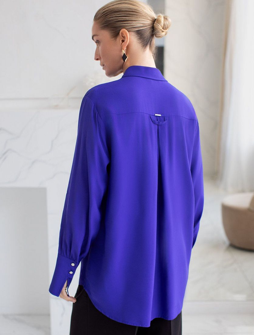 Блузка с имитацией карманов и удлиненными манжетами выполнена из премиальной вискозы и лиоцелла. На спинке изделия фирменный логотип бренда. Имитация карманов позволяет этому элементу выглядеть аккуратно без складок и фалд, которые вероятны на такой пластичной ткани.Застежка на золотистые пуговицы. Приятная на ощупь ткань охлаждает кожу в жаркую погоду. Отлично впишется в нестрогий офисный дресс-код или в расслабленном повседневном образе с джинсами.Похожие товары