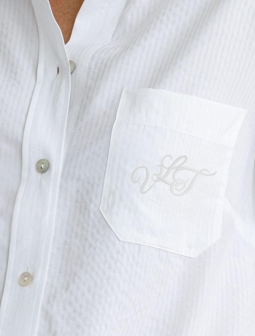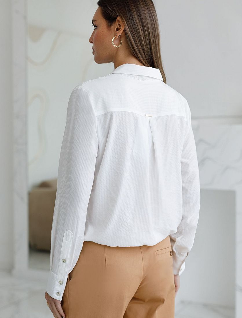 Легкая и комфортная блузка белого цвета из эластичного хлопка отлично садится по фигуре и дарит ощущение легкости в течение всего дня. Мягкая текстура материала не раздражает кожу, а натуральный хлопок гарантирует приятные тактильные ощущения. По низу предусмотрена кулиска, которая аккуратно фиксирует низ изделия, создавая стильный и современный силуэт. Такой элемент позволяет регулировать посадку, подчеркивая талию и добавляя эстетики в образ. Блузка украшена аккуратной вышивкой на кармане в виде логотипа бренда, что добавляет изысканности и демонстрирует ваше чувство вкуса.Похожие товары