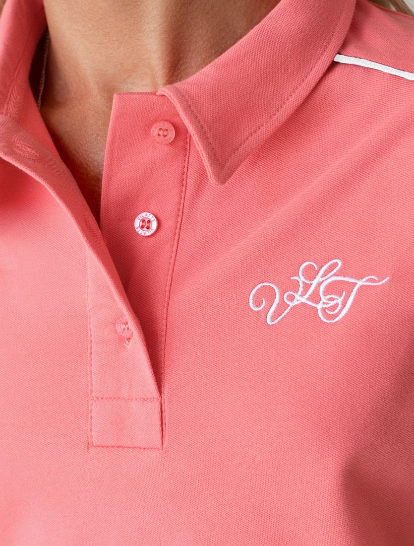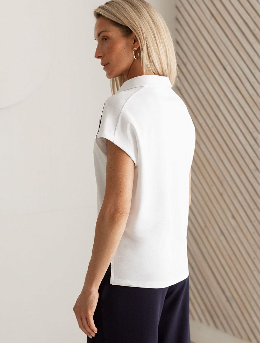 Футболка-поло выполнена из фактурного трикотажа. Модель с цельнокроеным рукавом дополнена вышитым логотипом и контрастными полосками из основного полотна по плечам. Свободный силуэт подходит для любой фигуры, хорошо смотрится в заправку с брюками и юбками теннисной коллекции. Идеально с джинсами в повседневном аутфите.Похожие товары