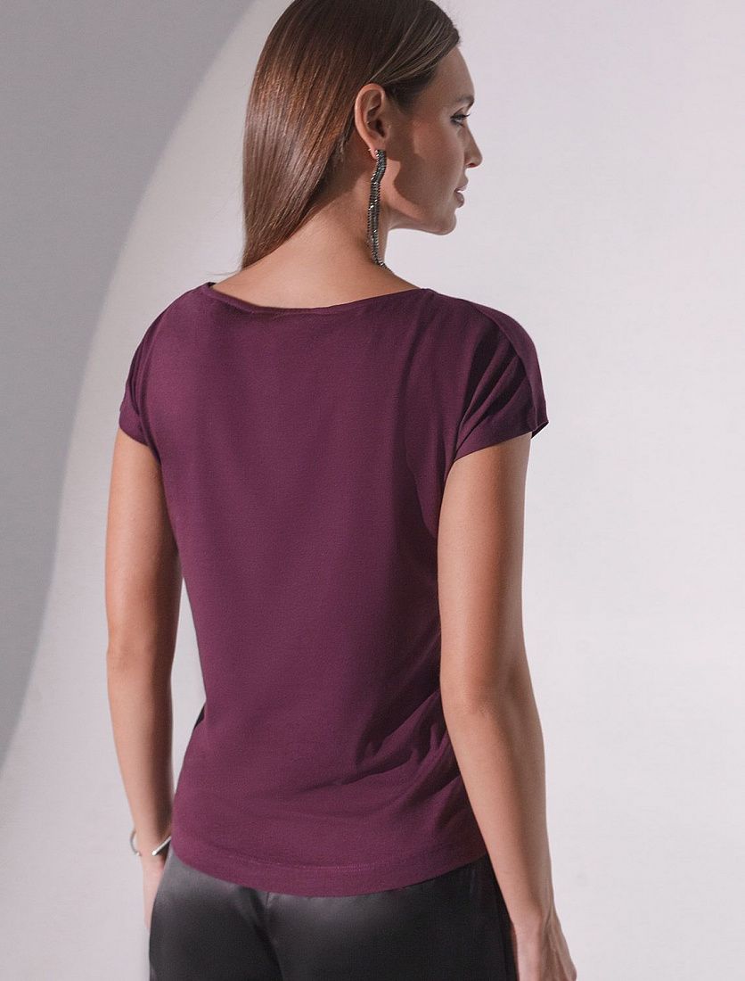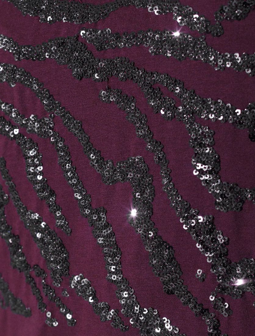 Футболка цвета бургунди идеально подходит для вечеринки и создания яркого образа. Оригинальный блестящий принт из пайеток серебристого цвета в виде зебры придает изделию шикарный вид, который привлечет внимание на любом мероприятии. Модель с вырезом лодочка и цельнокроеным коротким рукавом обеспечивает свободу движений и комфорт в носке. Такой фасон изделия подходит на большие размеры, гармонично сидит на фигуре и помогает создать легкий акцент на достоинствах. Аккуратный вырез лодочка красиво подчеркивает шею и делает образ элегантным, сохраняя актуальность для разных случаев — от рабочих встреч до вечерних прогулок и праздничных мероприятий. Модель изготовлена из премиального хлопка с добавлением эластана. Добавление эластана в состав изделия способствует формоустойчивости.Похожие товары